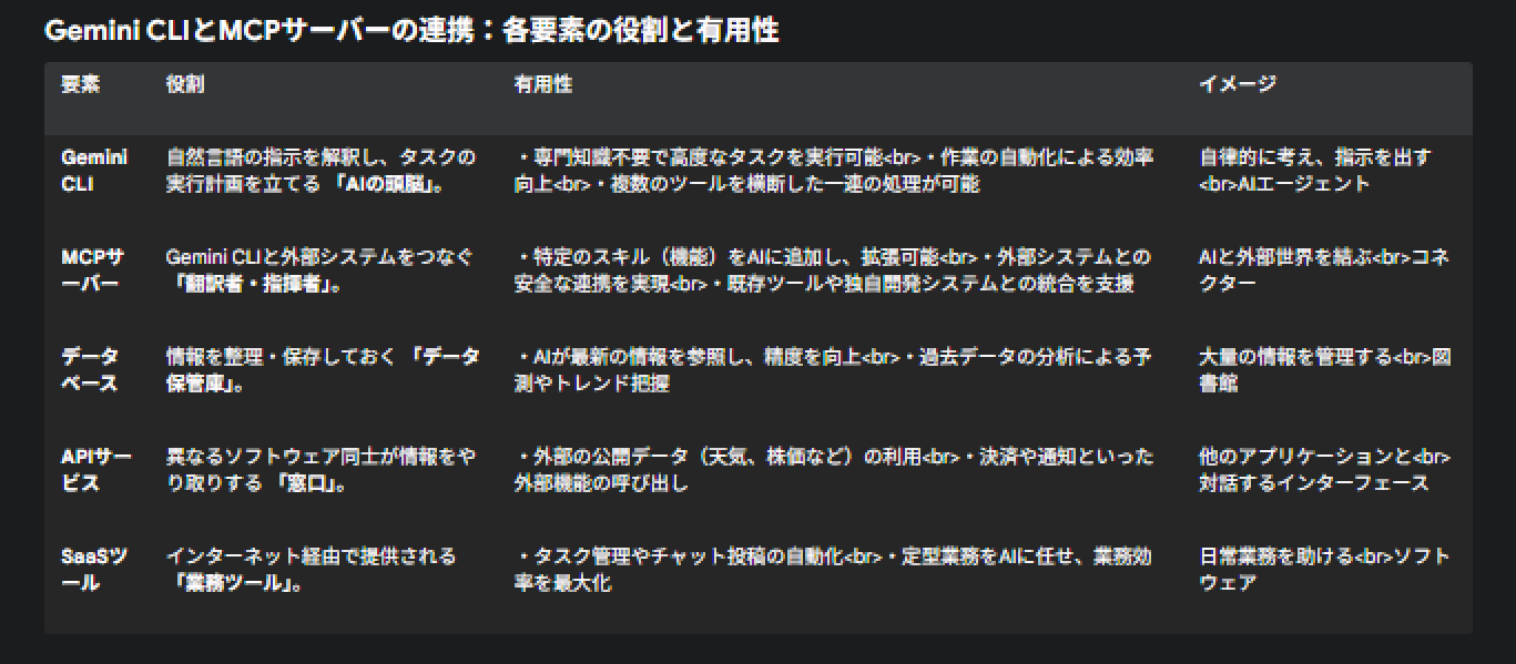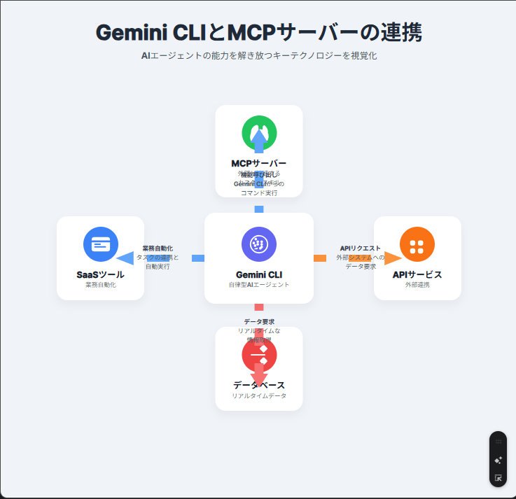 MCPサーバーの有用性を示すために、3回に渡ってMCPサーバーを紹介します。 第1回目:機能拡張のためのMCPサーバー(今回です) 第2回目:既存の有用なMCPサーバー(次回) 第3回目:手作りのMCPサーバー(次々回) ○生成AIGemini2.5(3) GeminiCLI(2) MCP(1) ※GeminiCLIにはGemini2.5と違って、静止画の生成/動画の生成機能がありません。 ※そこで拡張機能を利用して、GeminiCLIに静止画&動画の作成機能を追加します。 ※利用する機能はGeminiCLIのMCP(Model Context Protocol)機能です。 ○生成AIGemini2.5(4) GeminiCLI(3) MCP(2) 既存のMCPサーバーの例を取り上げます: ・MCPサーバー:Context7 ・MCPサーバー:GitHUB ○生成AIGemini2.5(5) GeminiCLI(4) MCP(3) MCPサーバーの作成、MCPのクライアントの作成 MCPサーバーでデバッグ方法: ・MCP INSPECTORツール ・PostManツール