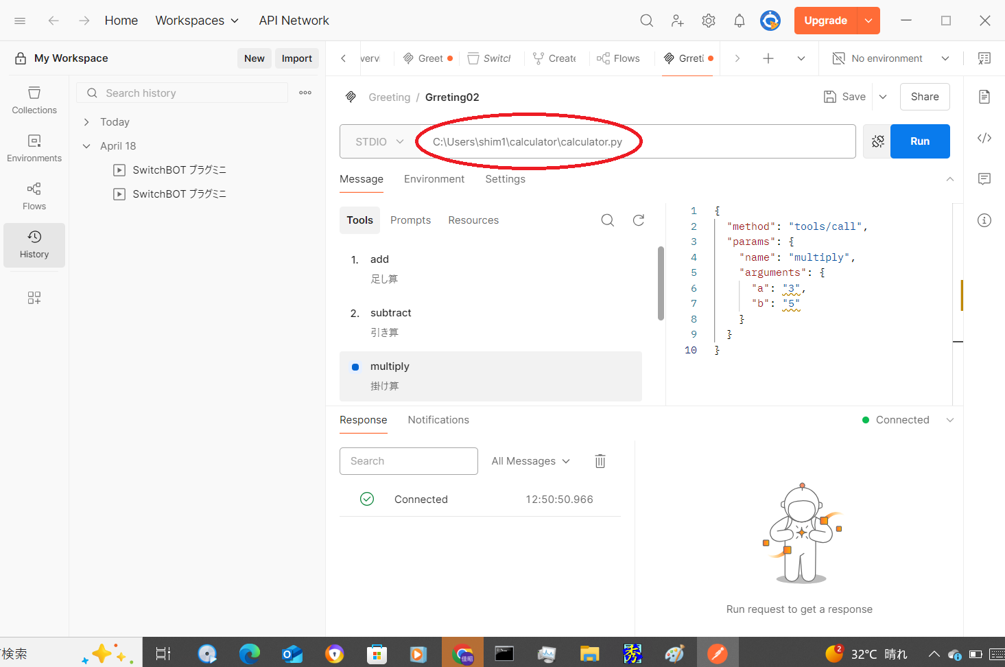 # greetツールの呼び出し