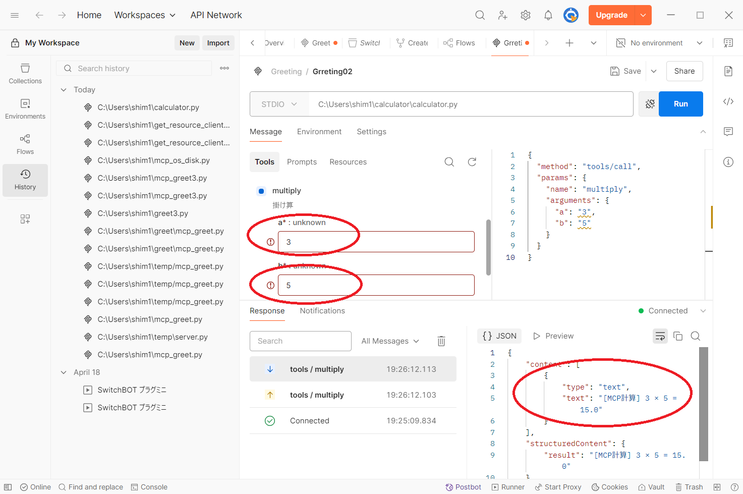 ###実行方法:C:\Users\shim1>uv run mcp_greet_client.py