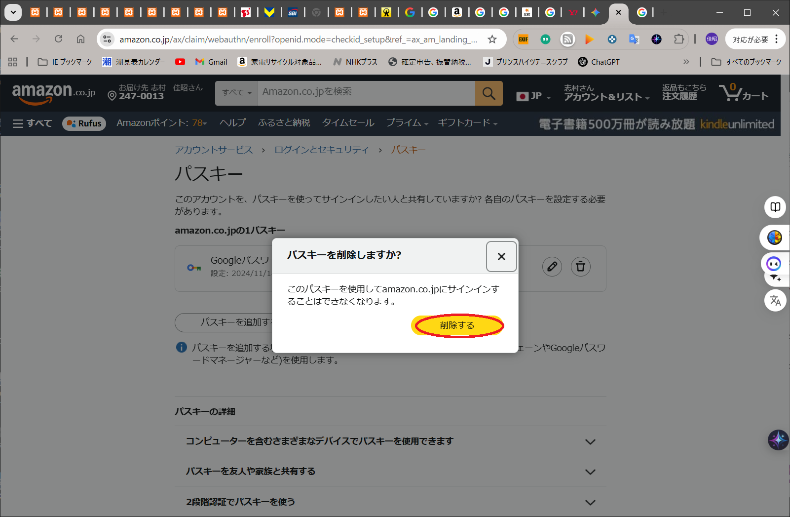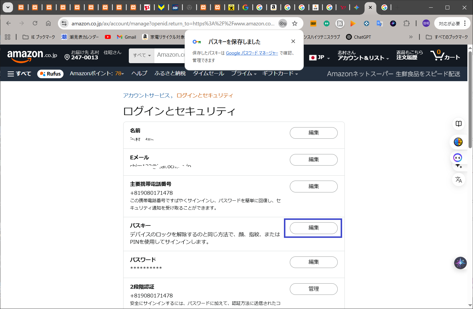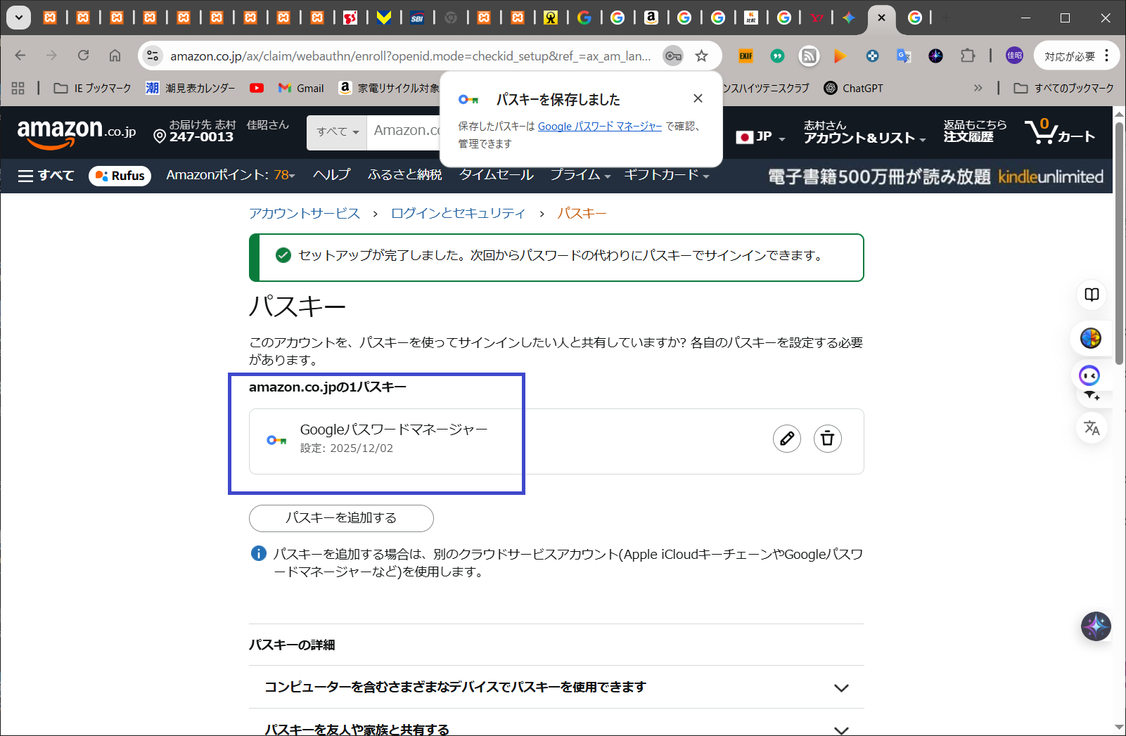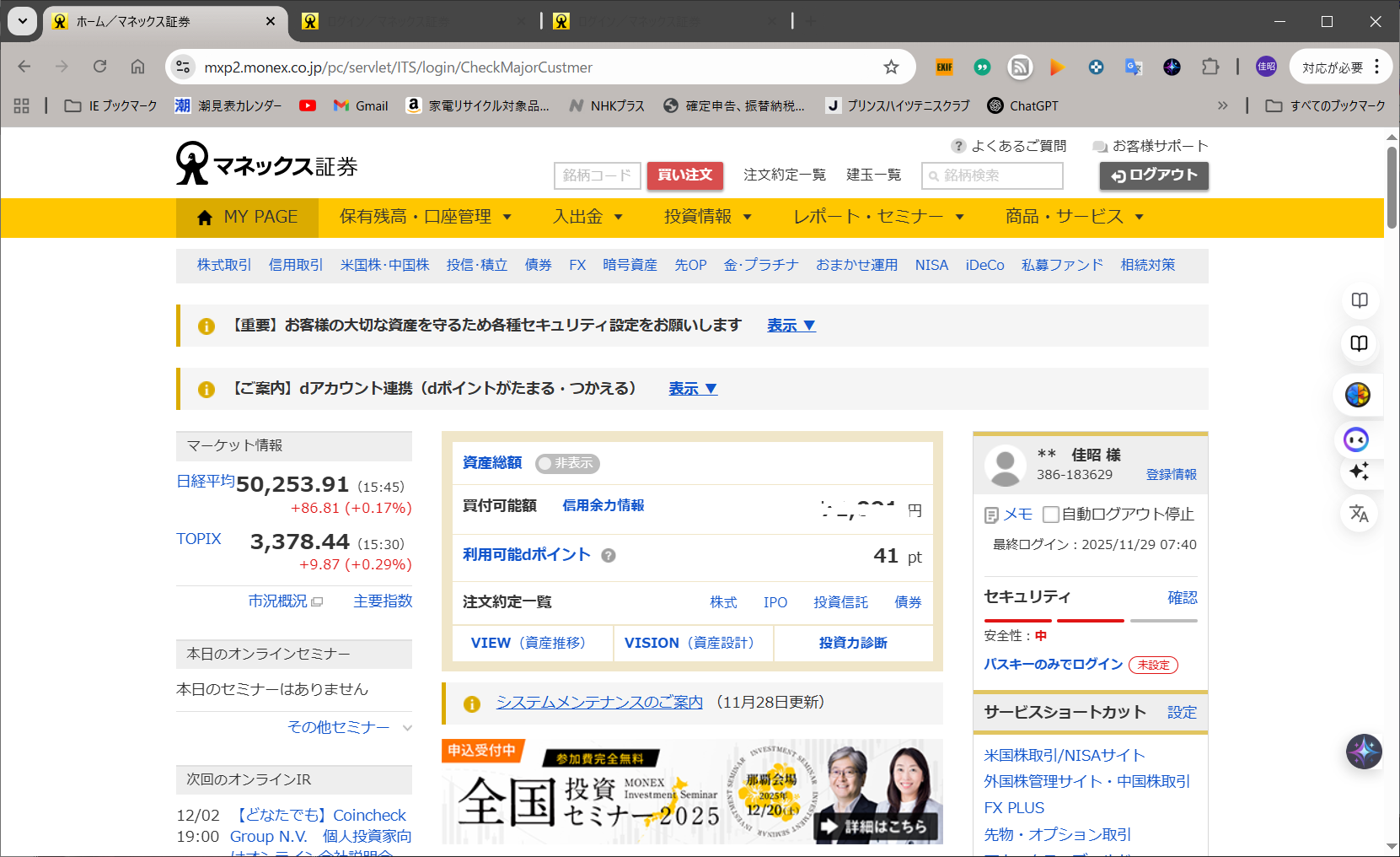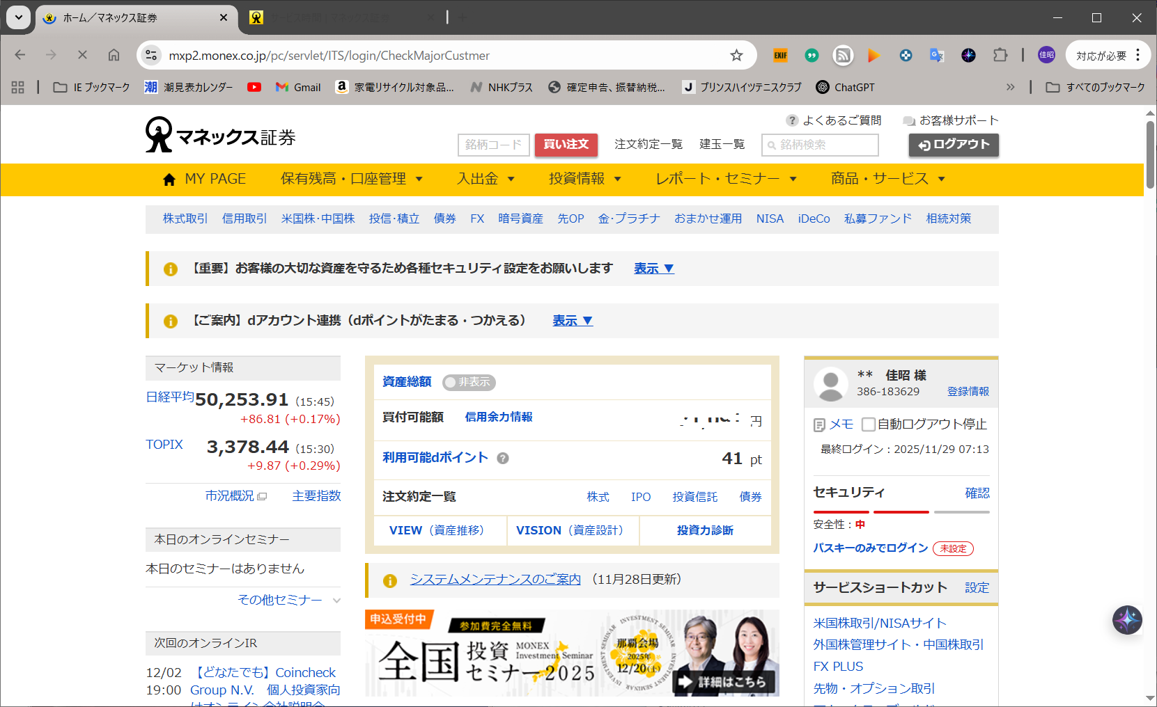 マネックス証券は、2025年12月中旬に「マネックス証券アプリ」へのパスキー対応を予定しています。 なお、2025年10月31日より、ウェブブラウザ(PC・スマホ)や、2025年12月頃までにはアプリもパスキー認証を順次導入予定です。 ・ウェブブラウザ(PC・スマホ): 2025年10月31日より対応済みです。 ・マネックス証券アプリ: 2025年12月中旬の対応を予定しています。○パスキーの登録(PC)