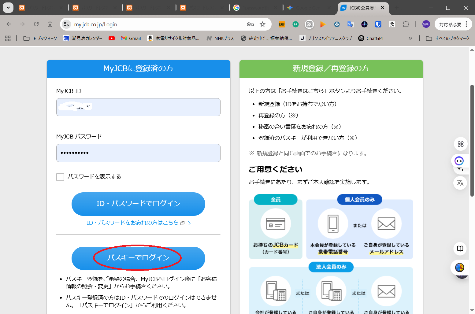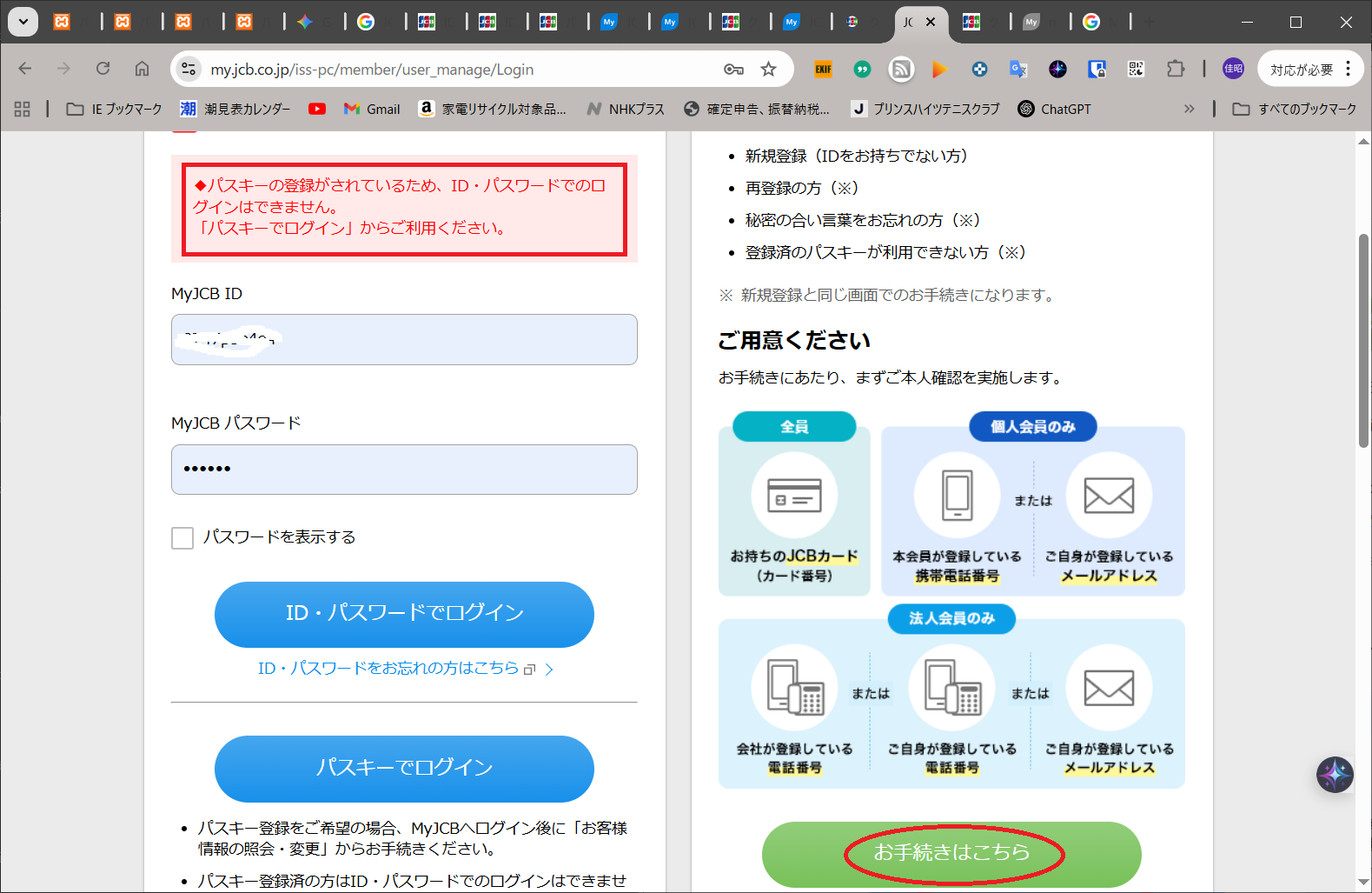 | JCBカード | 2025/11月 | X | ○ | 「ID/Passの併用」 ○にするには、解除が必要 リクルートカード等 |