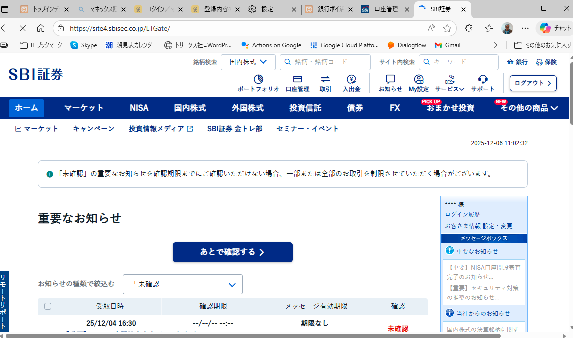 | SBI証券 | 2025/10月 | ○ | X | ||