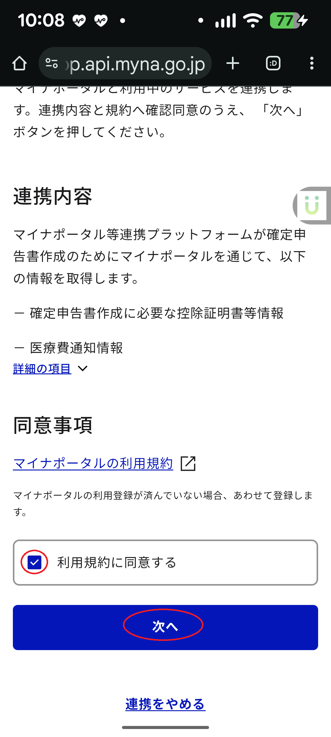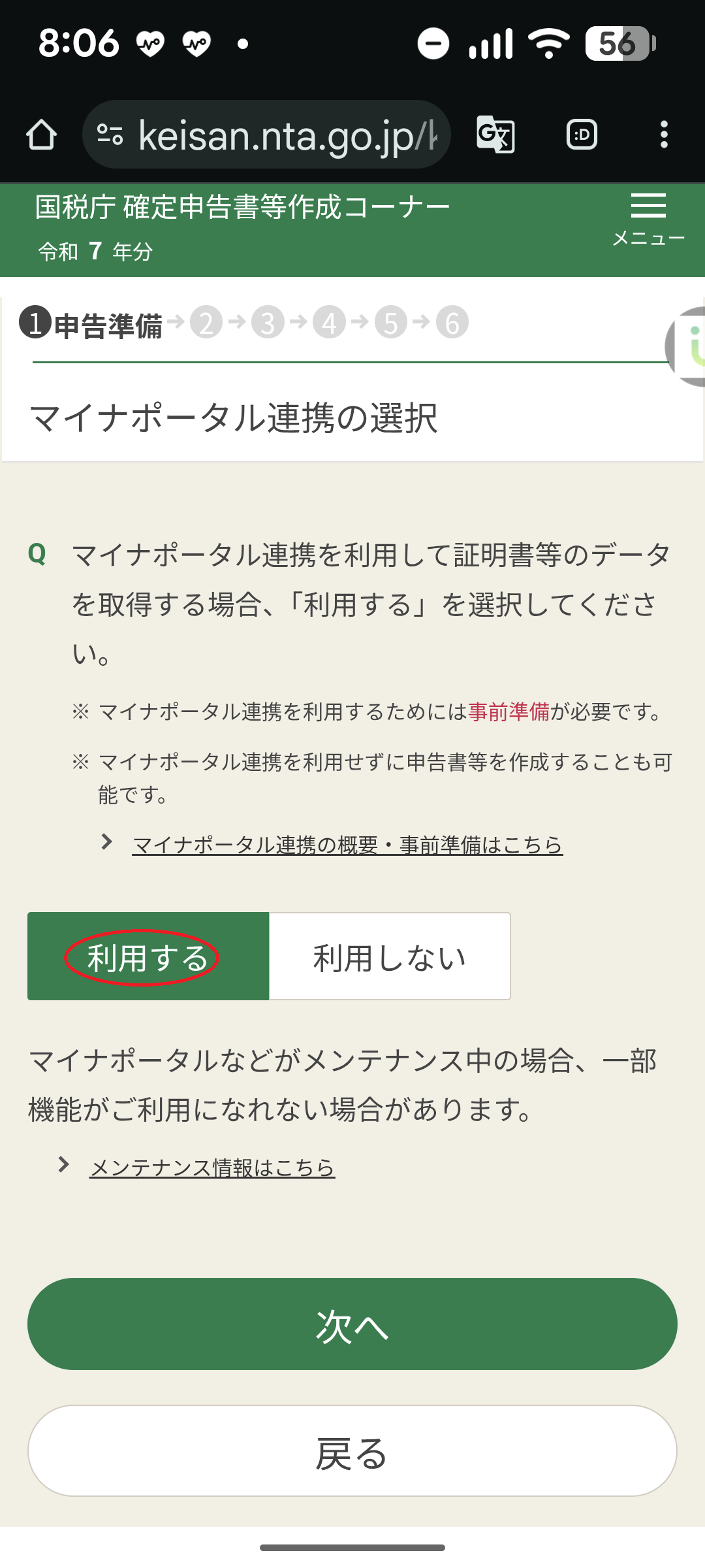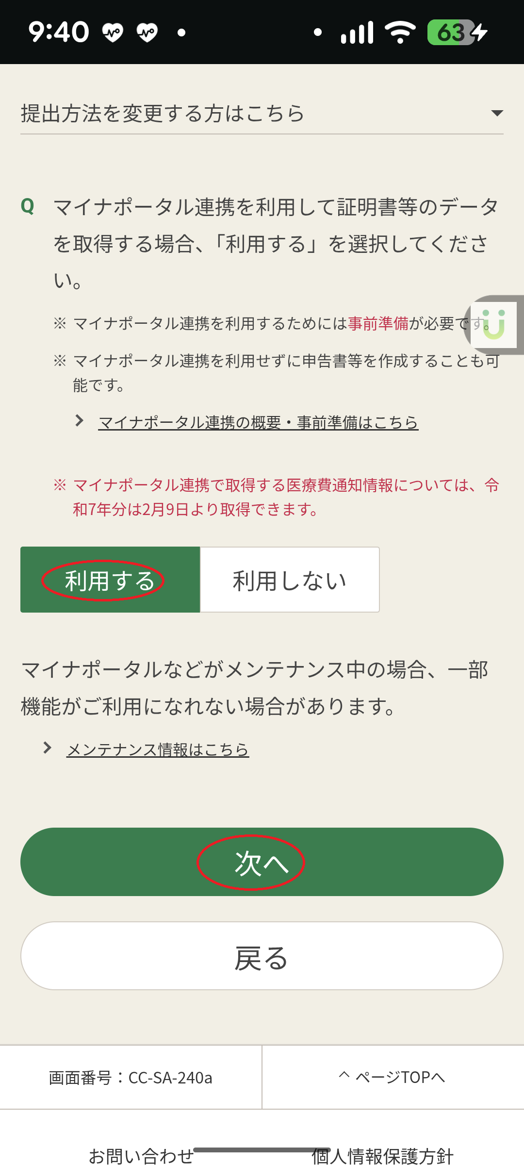 ○マイナポータル選択