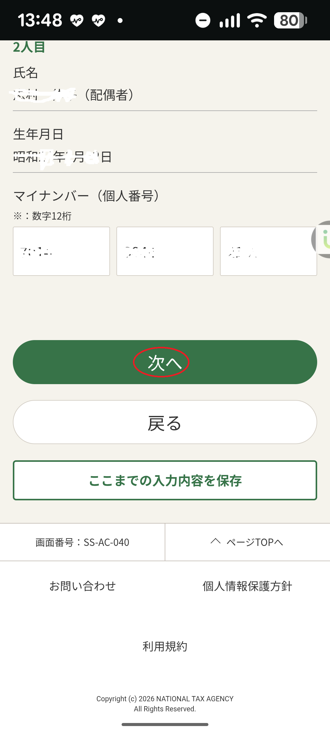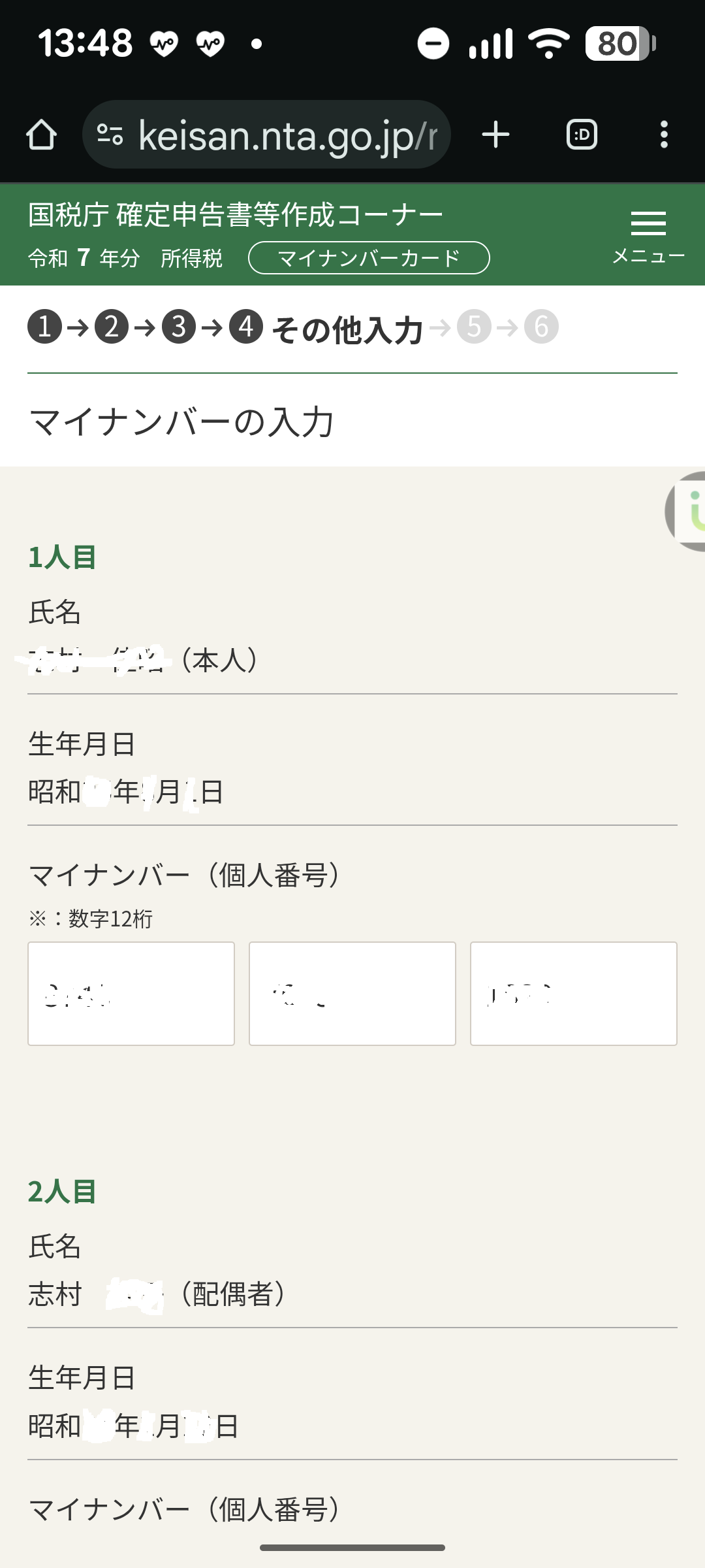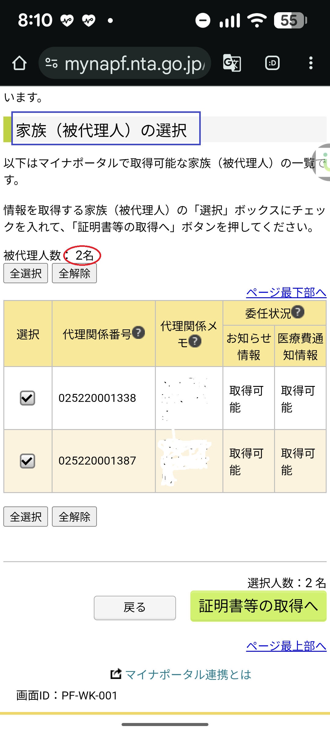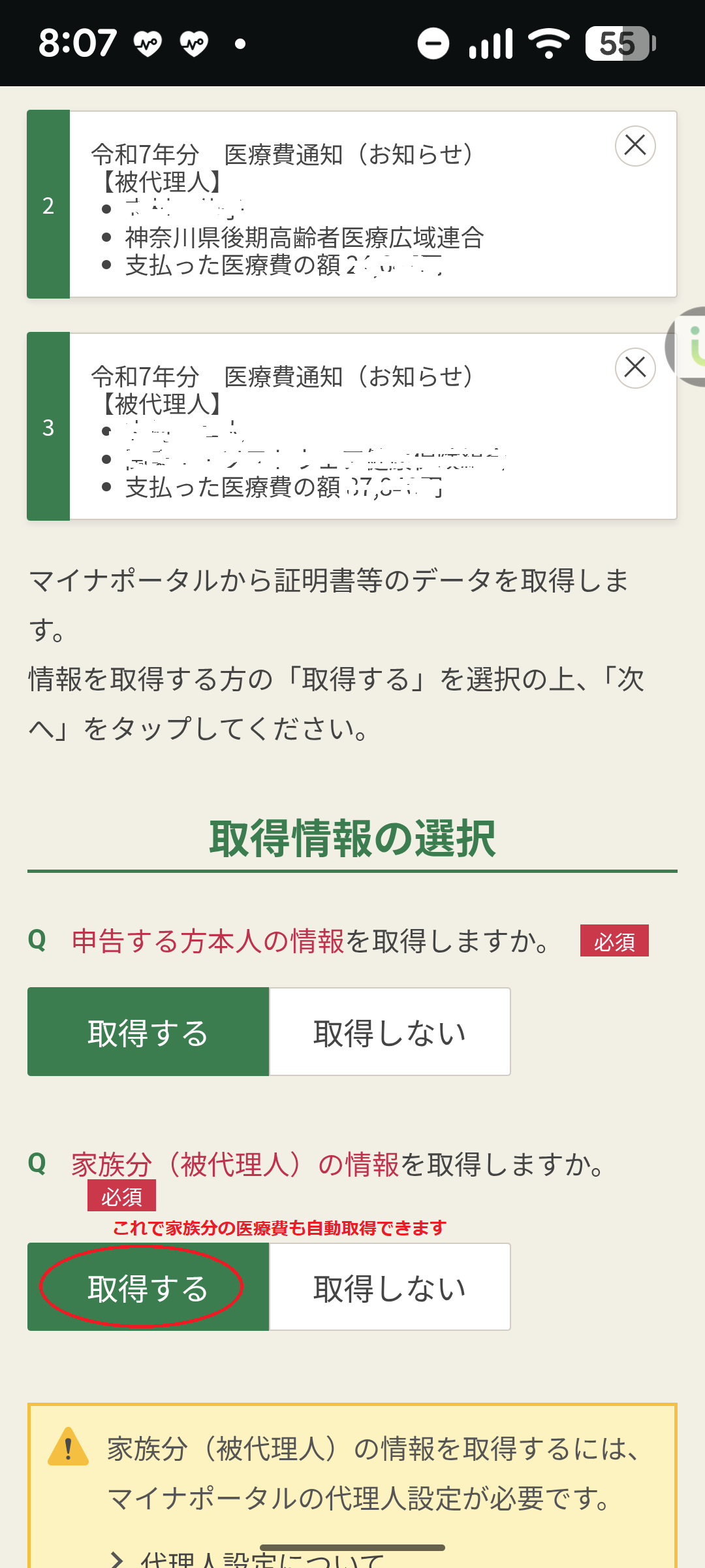 ・家族情報は、マイナポータルから取得しない(取得するには、事前に「代理人登録」が必要)