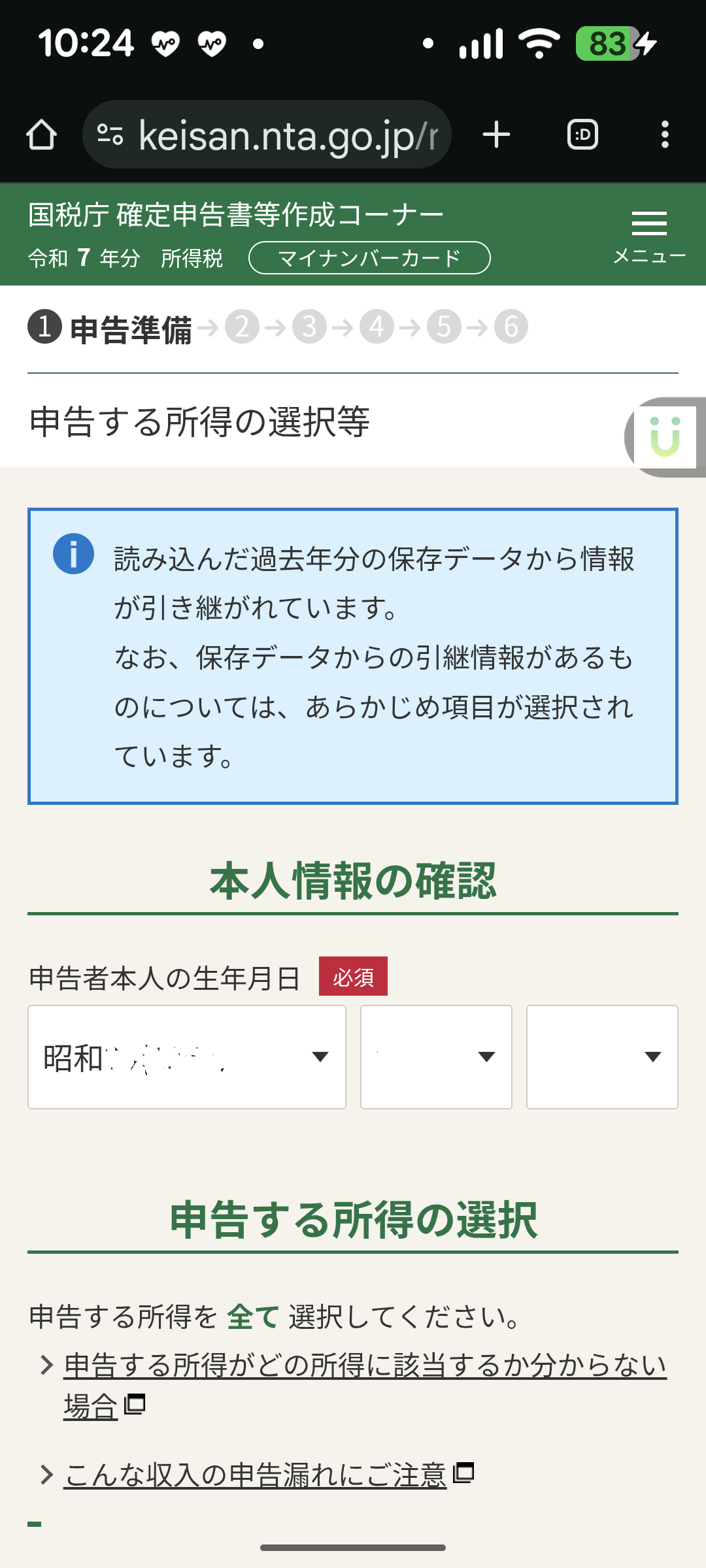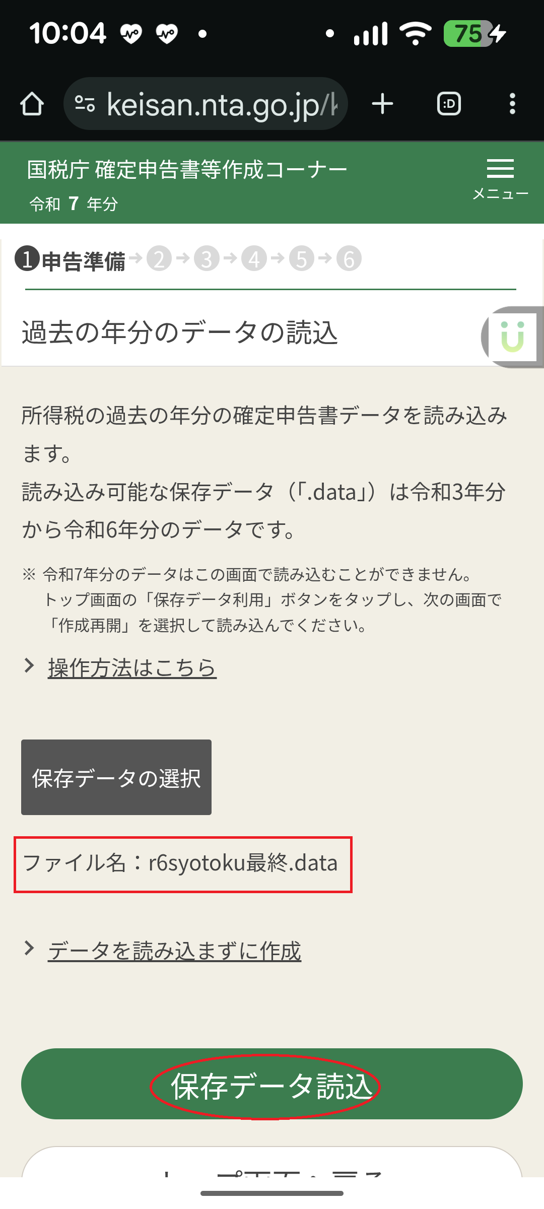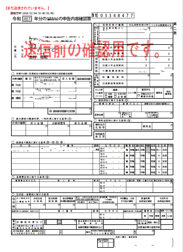 ・昨日のデータ(r7syotoku.data)を読み込んで、確定申告を再開します。
