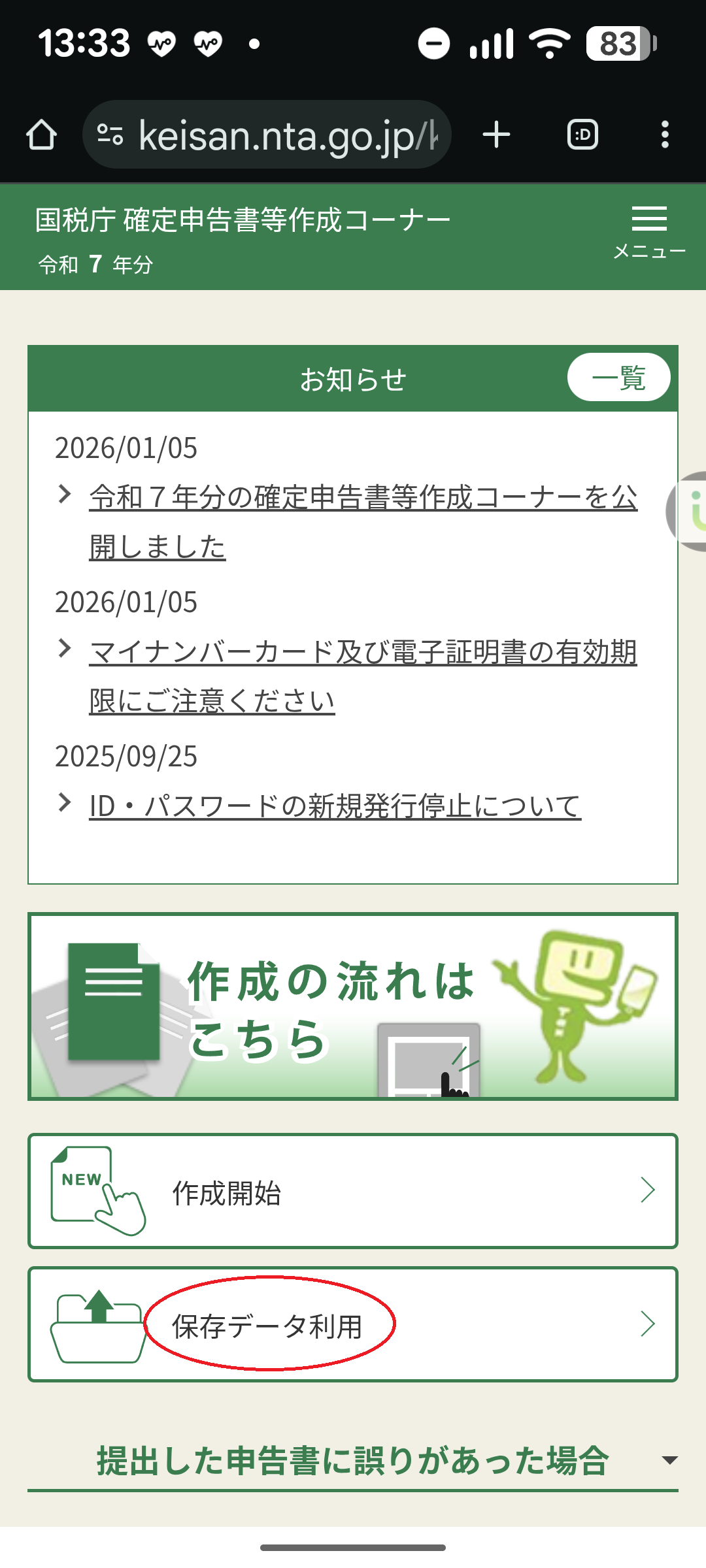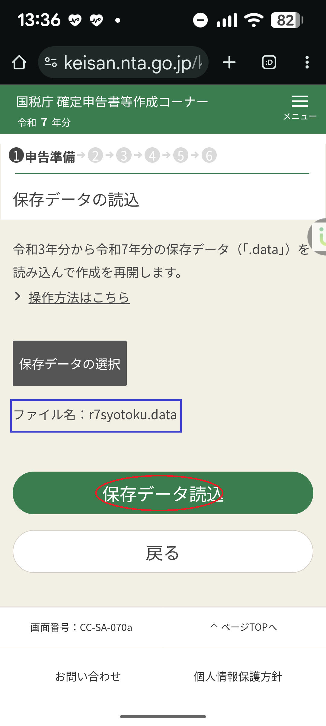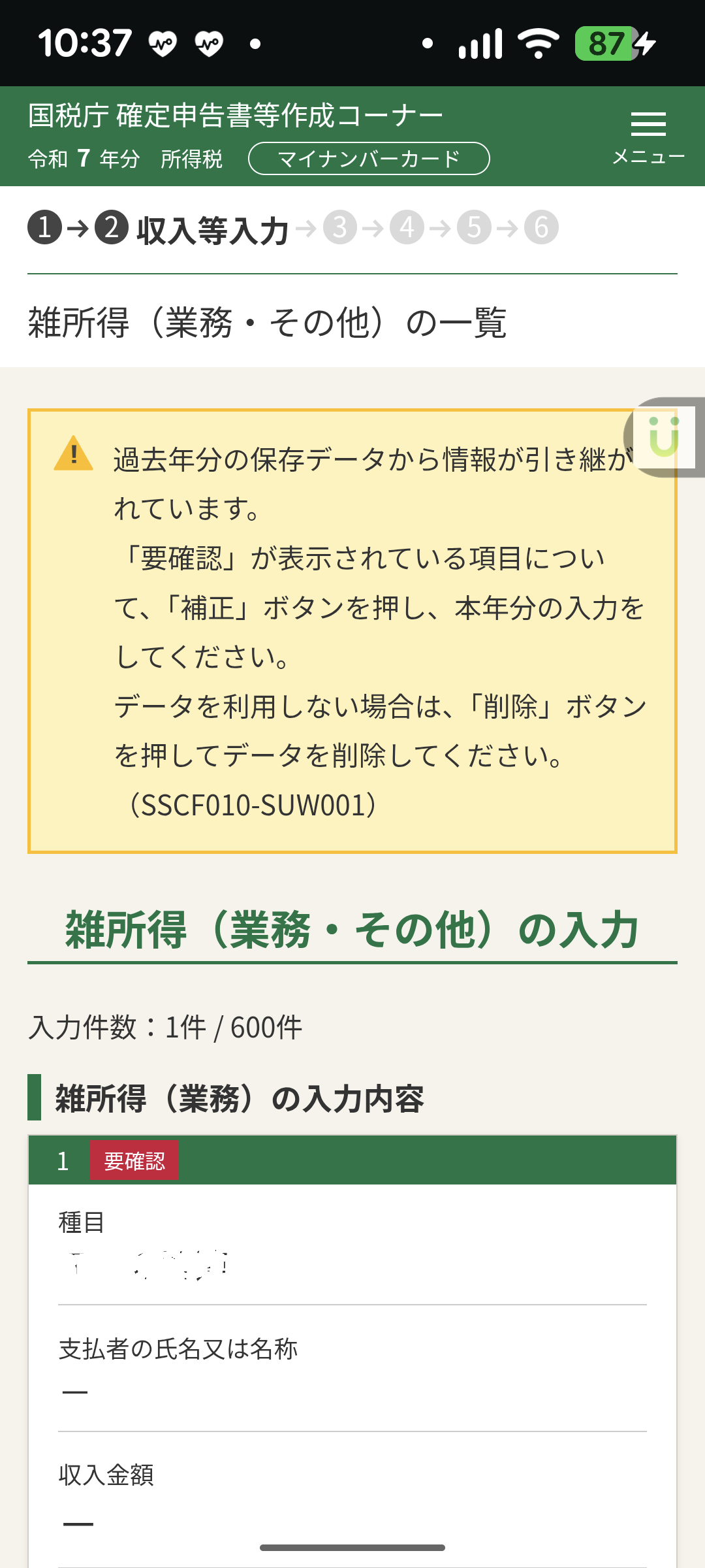 ・昨日のデータ(r7syotoku.data)を読み込んで、確定申告を再開します。