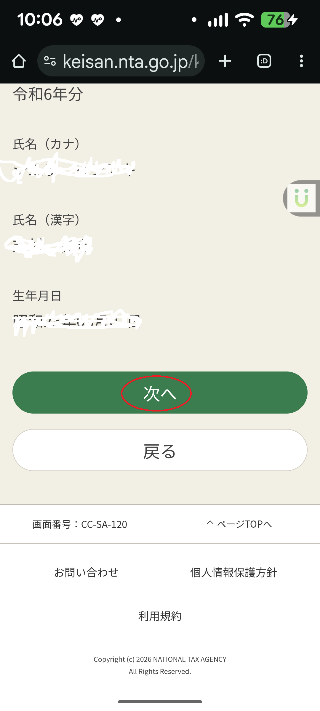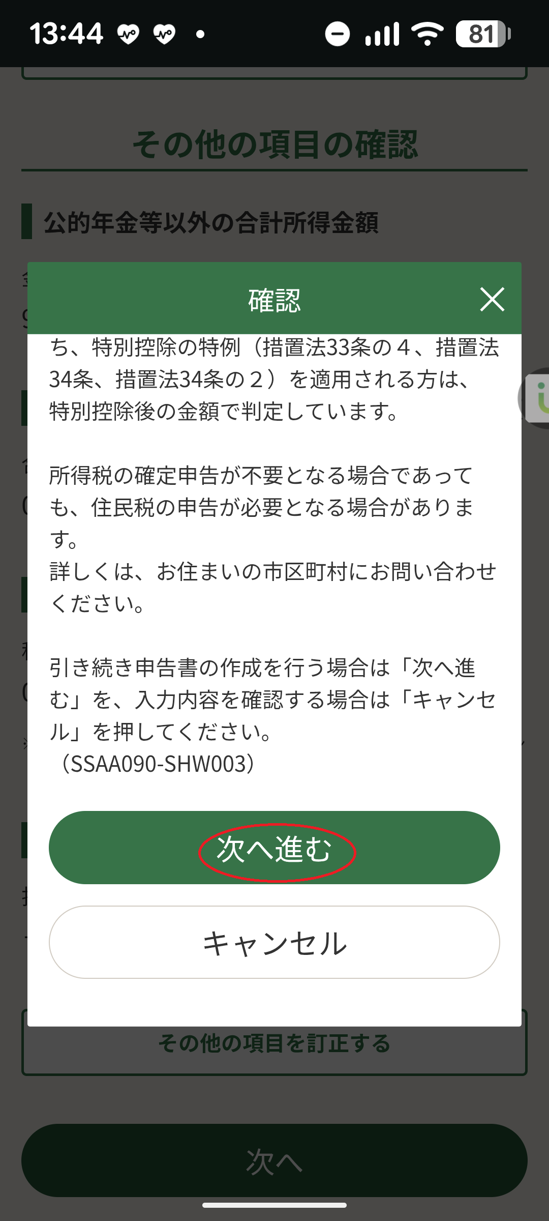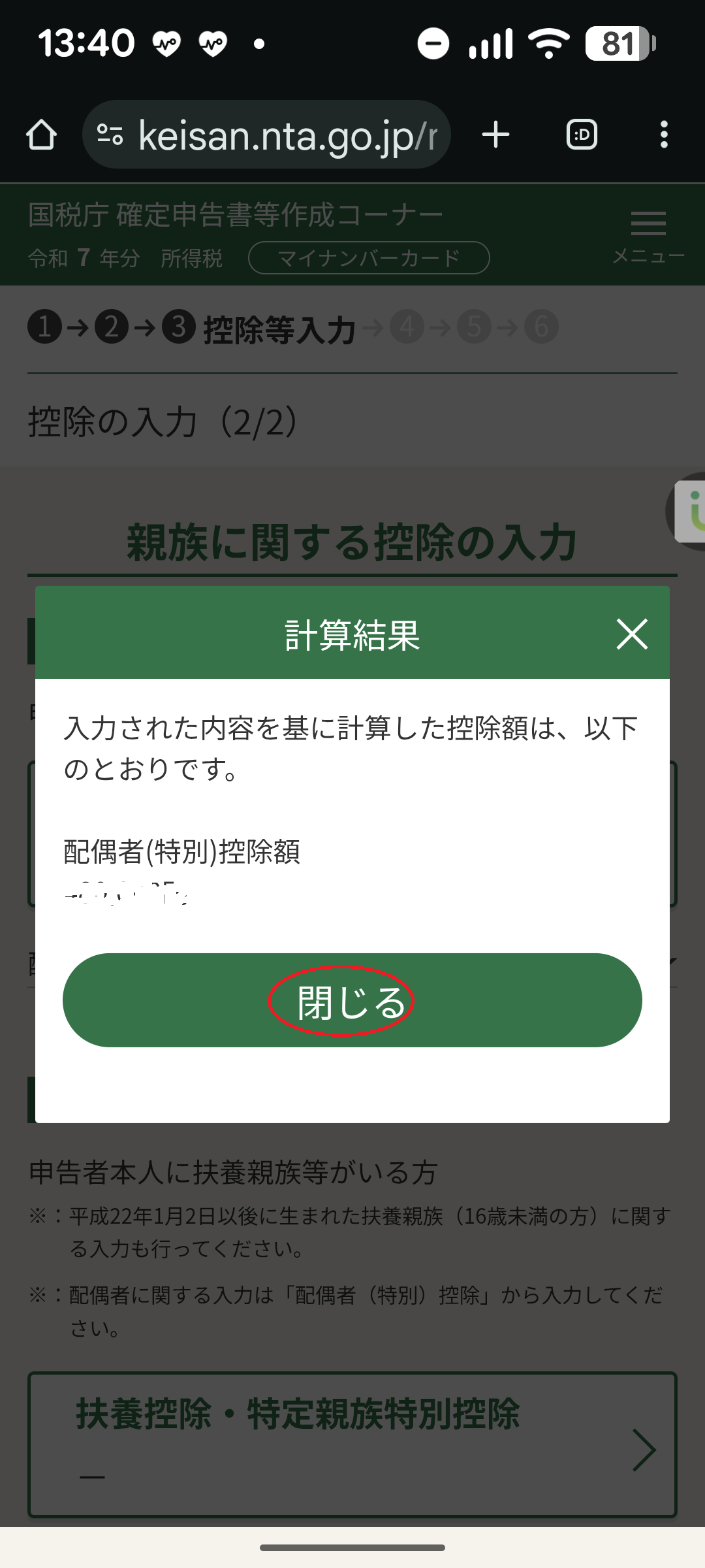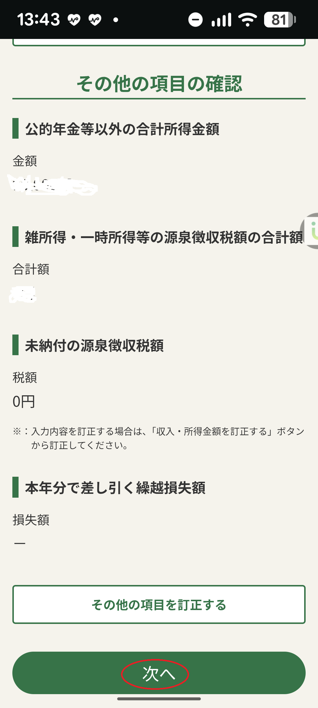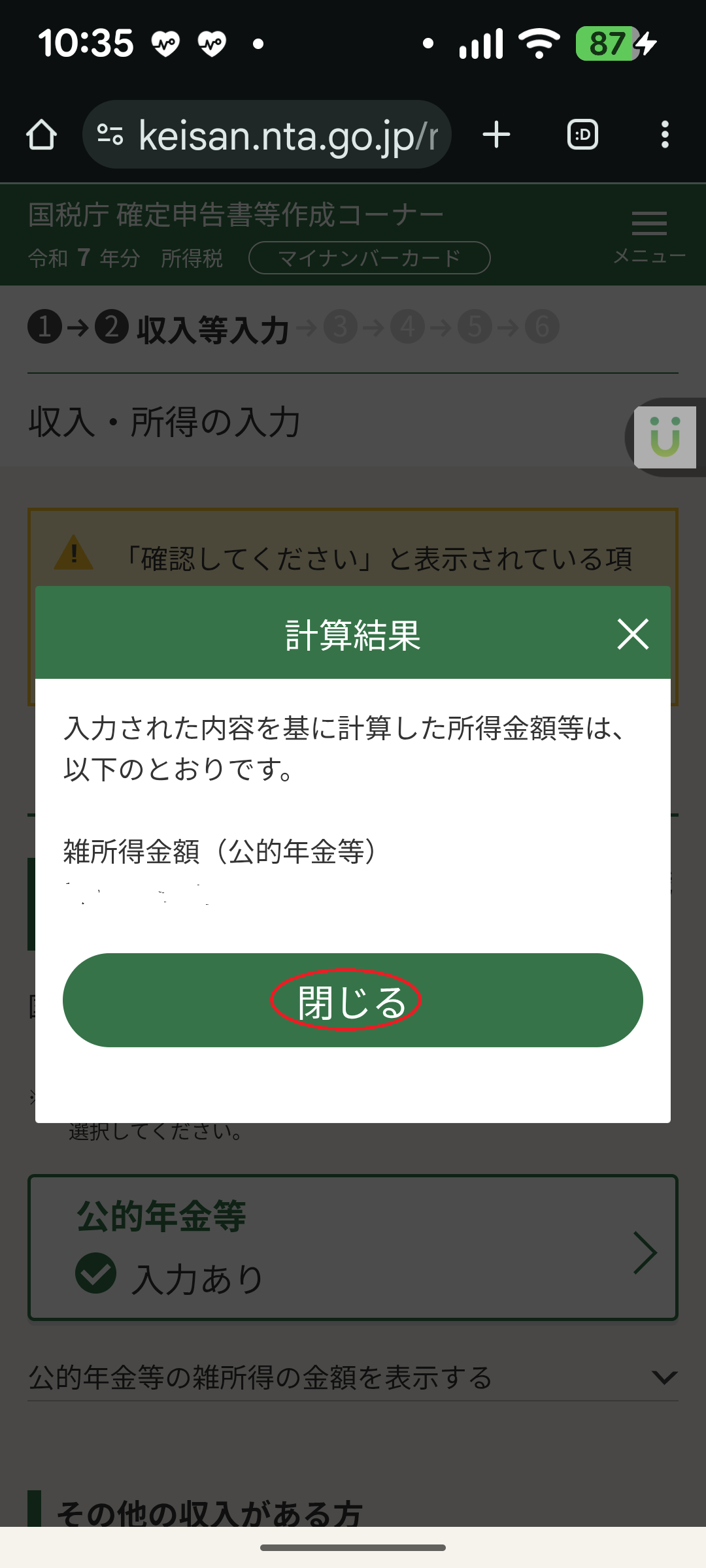 ・収入、所得金額、控除金額等の計算値を確認します。