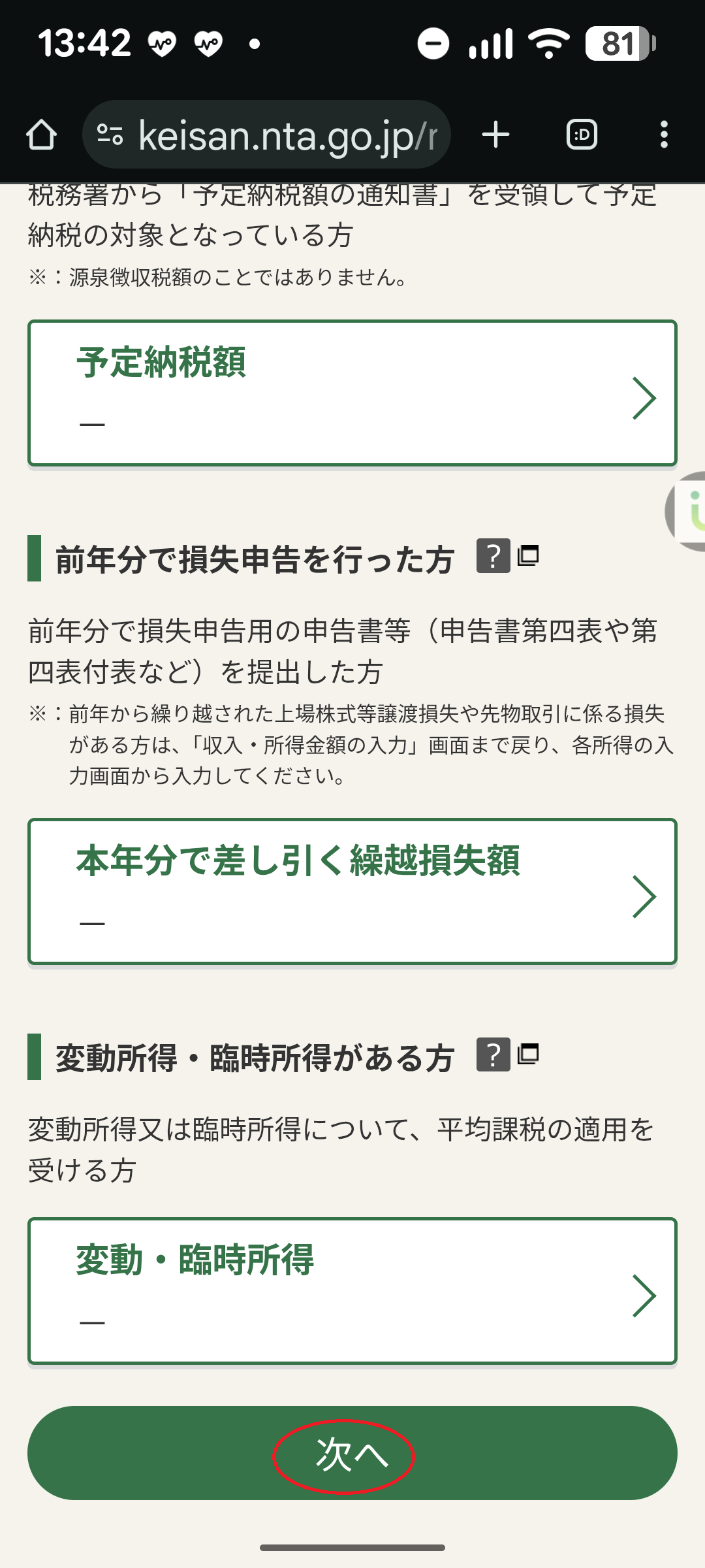 ○納税額確認