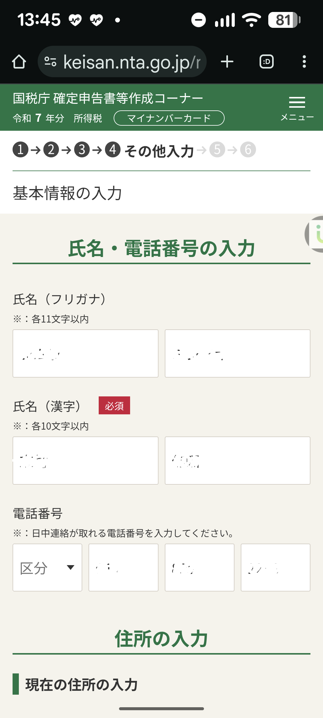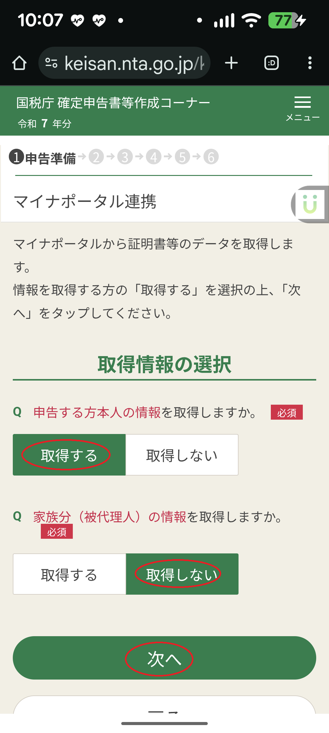 ・e-taxから本人情報を取得する(過去に利用しているので)