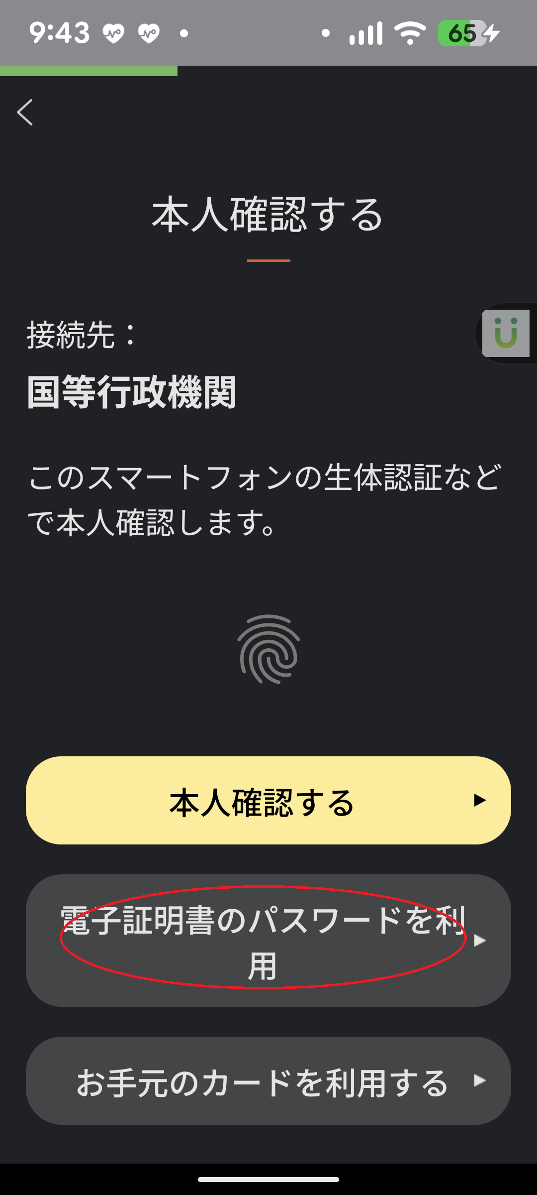 ・スマートフォンの生体認証で本人確認する