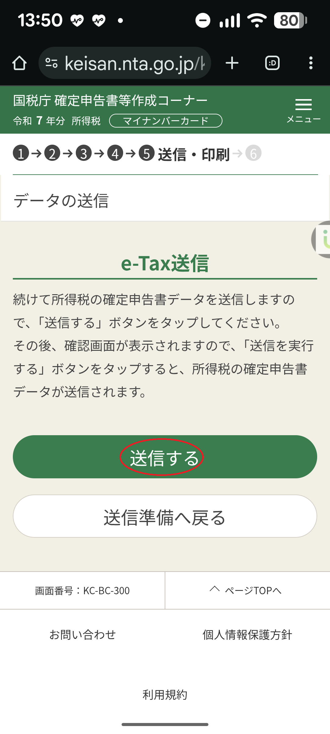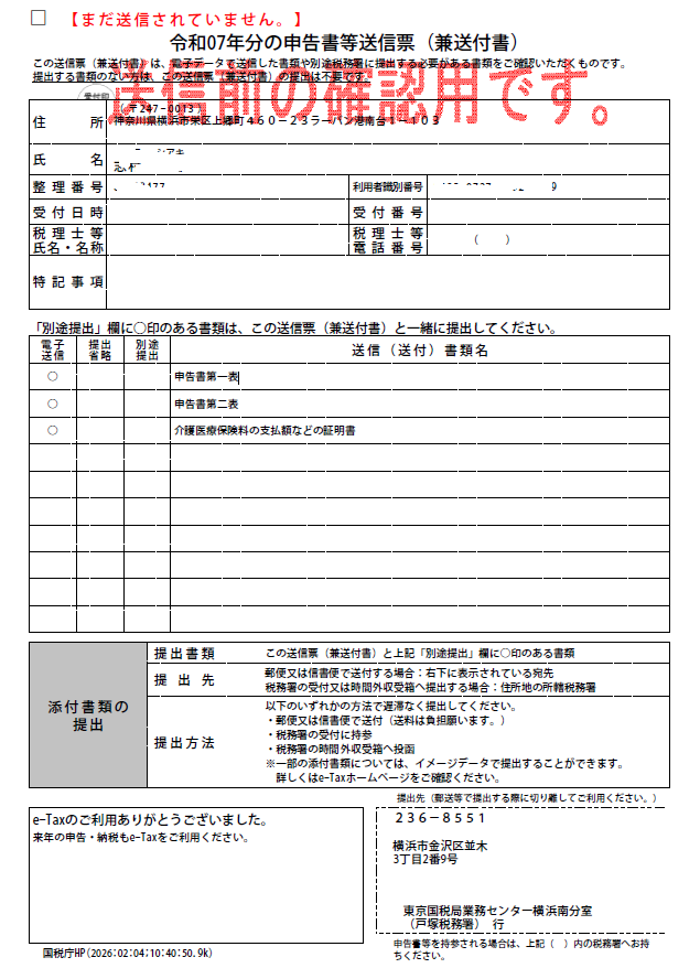 ・最後に、申告書をe-taxで送信します。