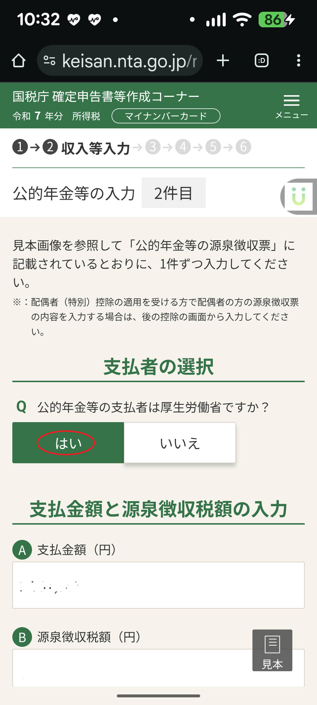 ○所得入力(公的年金等)