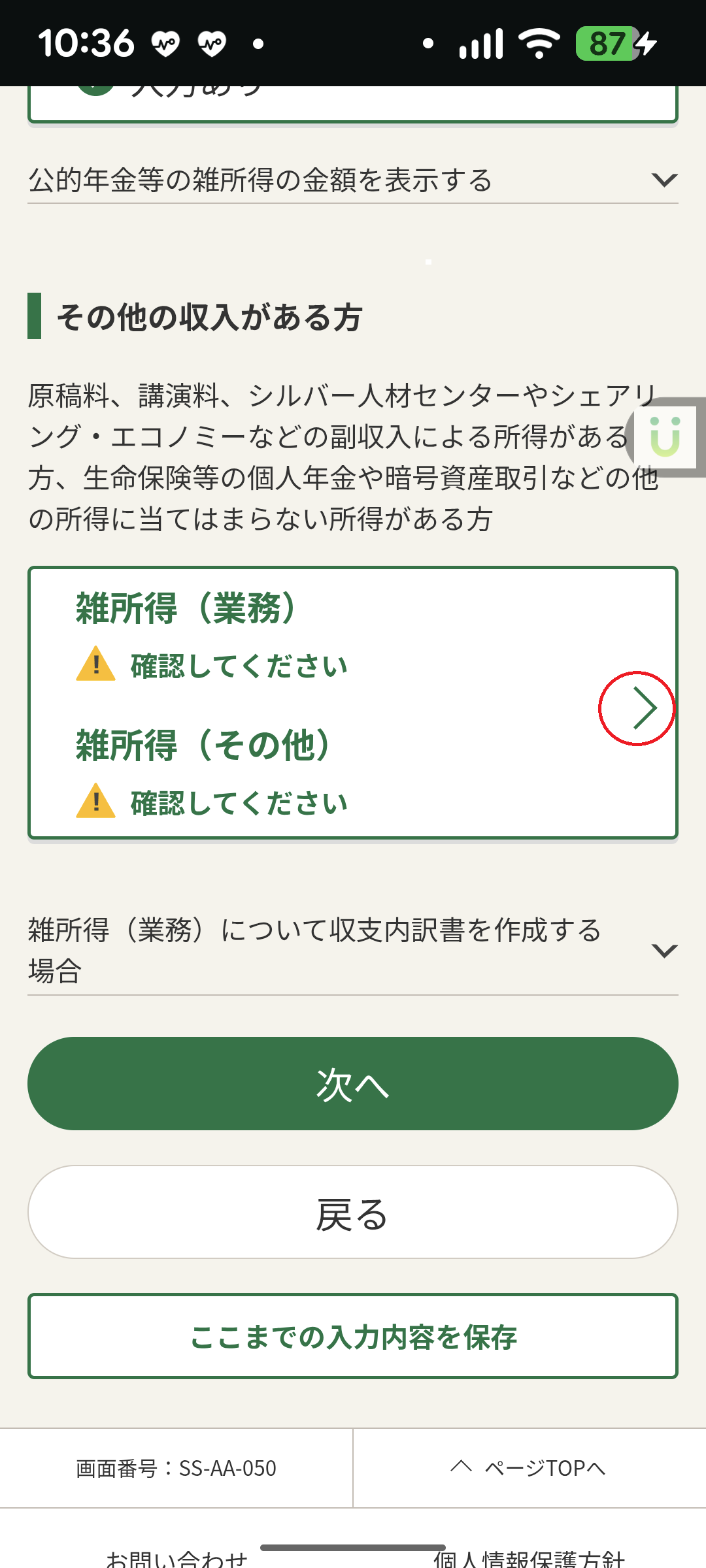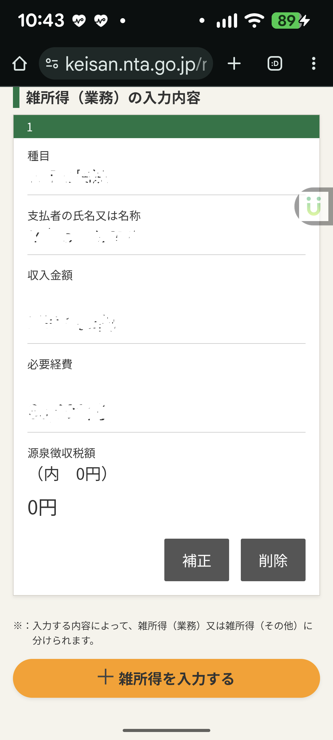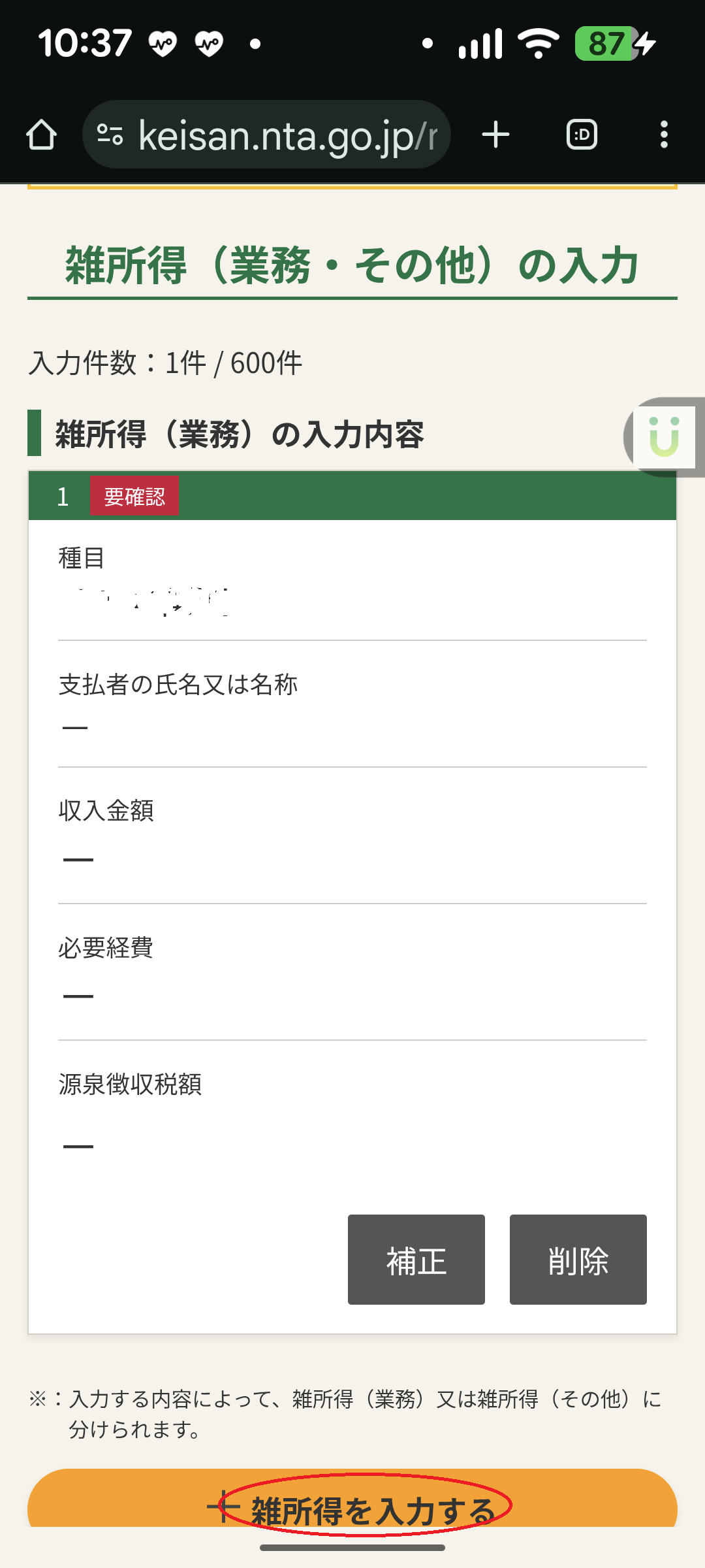 ○所得入力(雑所得)