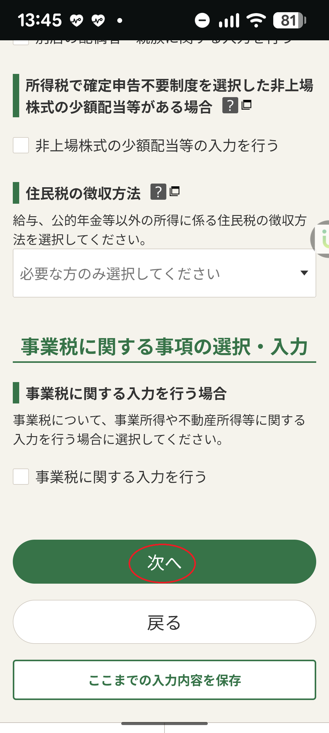 ・住民税の徴収方法の選択。