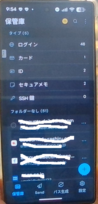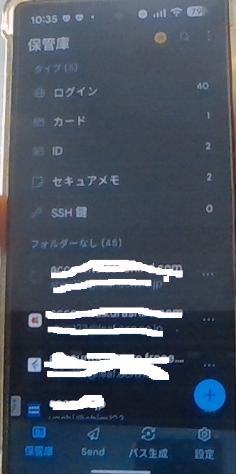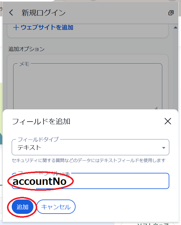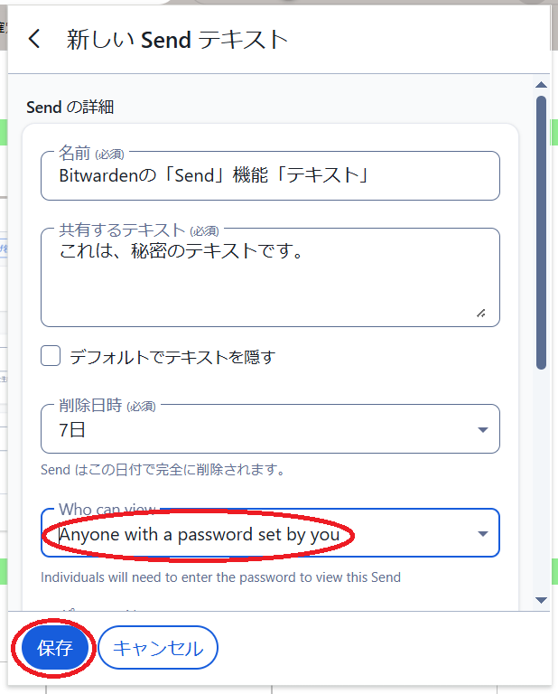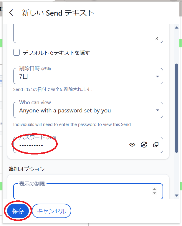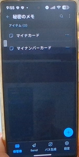 | 非表示(Hidden) | 「テキスト」と同じですが、画面上で「●●●」と伏せ字になります。 PINコードや2段階認証のバックアップコードなど、人に見られたくない情報の保存に最適です。 |