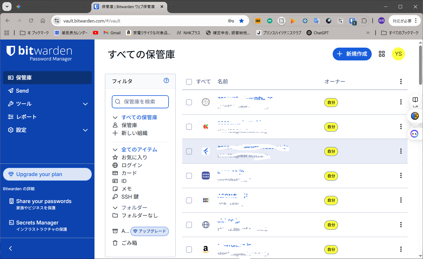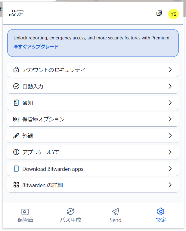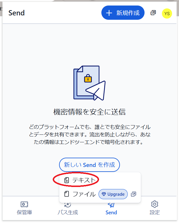 | 付加機能 | Bitwarden Send | ファイル500MBまで送信可能 | ファイル500MBまで送信可能 | ファイル100MBまでに制限 | ファイル500MBまで |