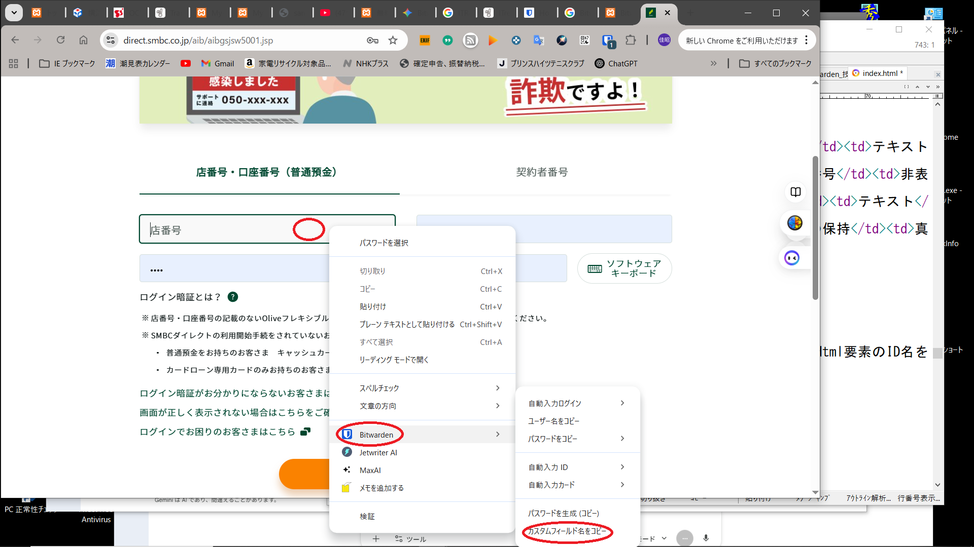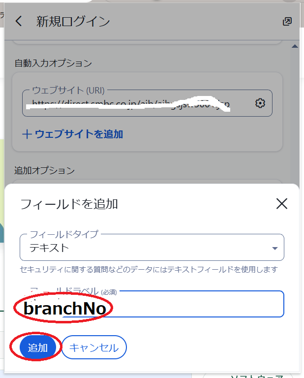 | 銀行の店番号 | テキスト | サイトのHTML要素名 (例: branch_code) |