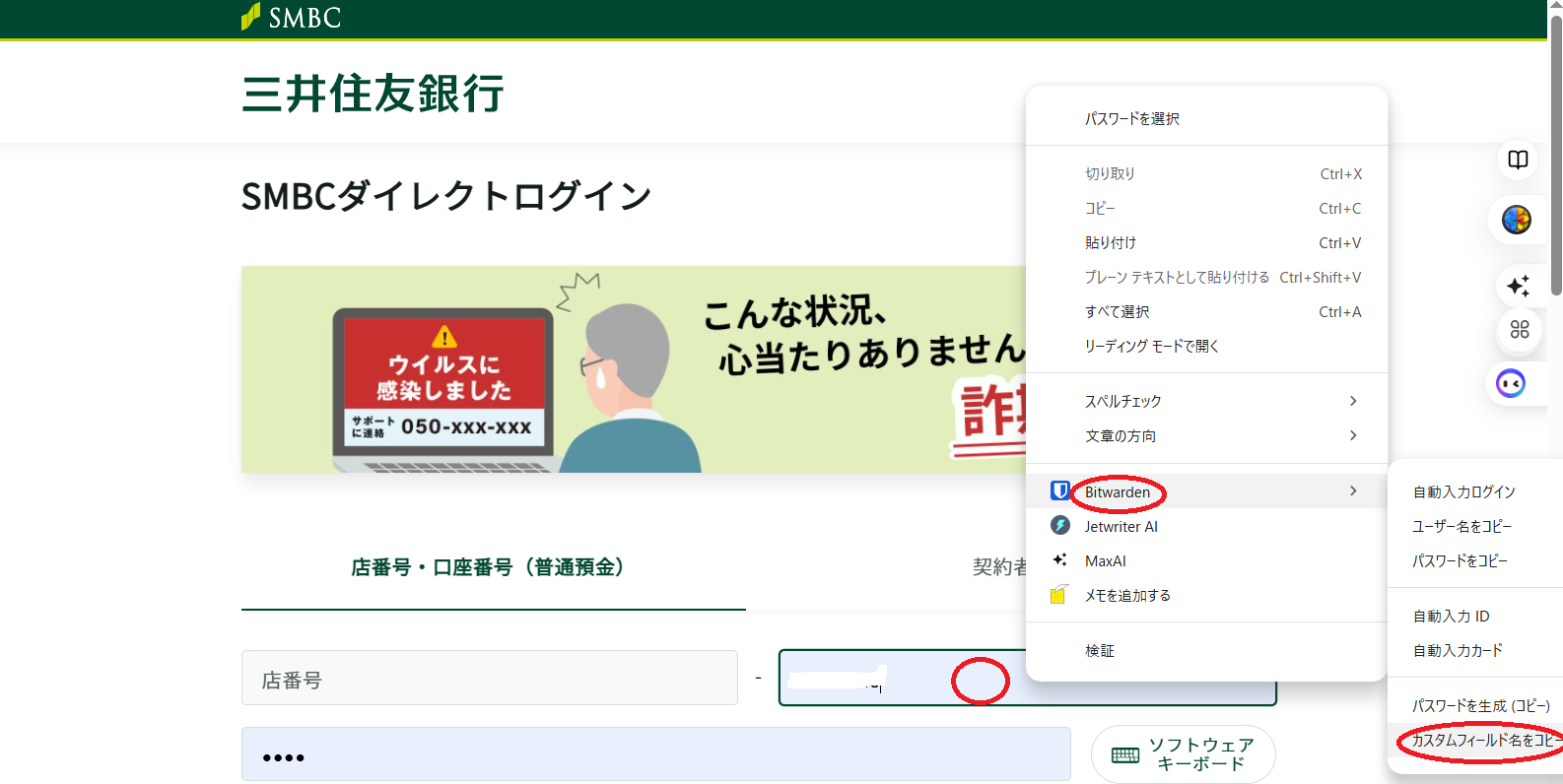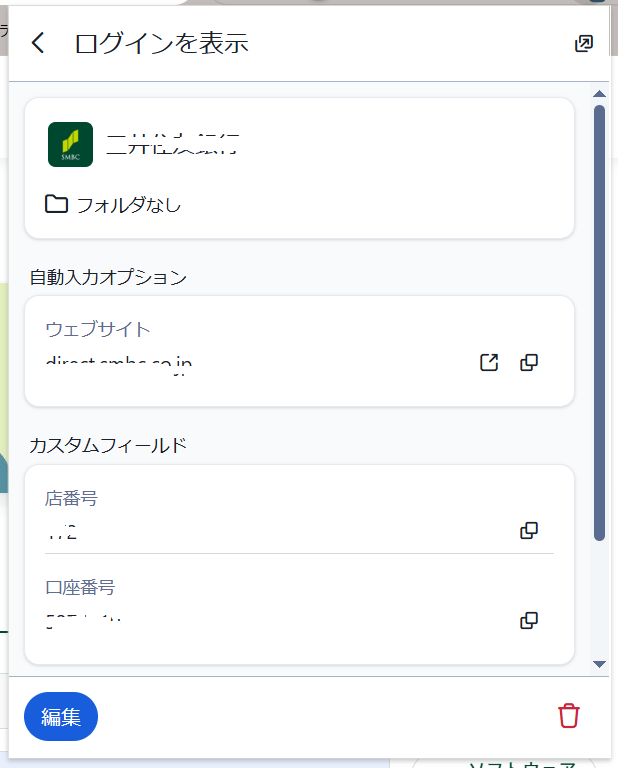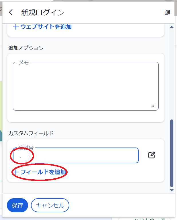 | クレカの暗証番号 | 非表示 | (メモとして利用、または自動入力用ID) |