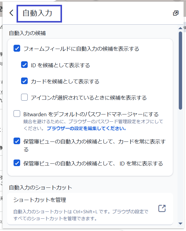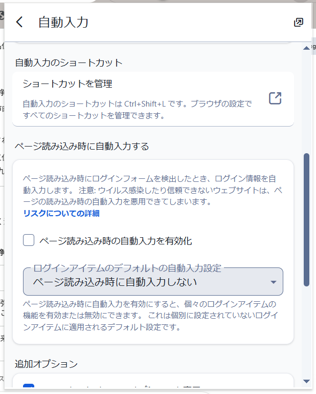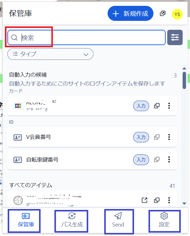 | 自動入力 | ブラウザ内自動入力 | ドラッグ&ドロップのみ対応 | 高度な自動入力(ショートカット、バッジ等) | OSの自動入力サービス経由で対応 | 非対応 (手動コピー) |